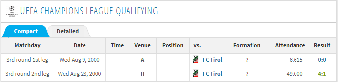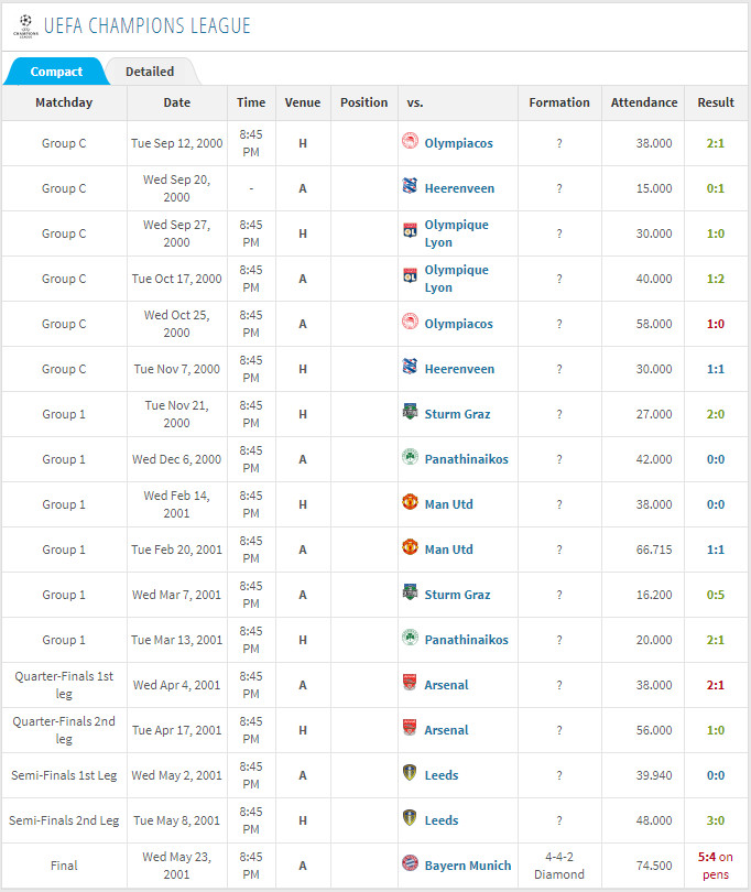 这种赛制下,一支球队杀进决赛要踢17场比赛。必须要提瓦伦西亚,他们在99/00和00/01赛季还参加了欧冠附加赛,两次都是单赛季踢19场欧冠,然后杀进最终的决赛,但38场欧冠下来只获得两次亚军!看下当时他们的欧冠赛程吧!