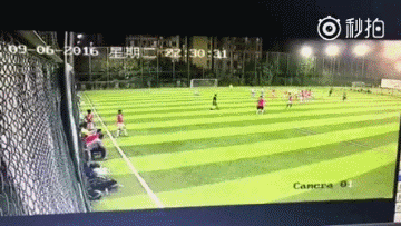 监控画面拍到了这完整的一幕,2016赛季八人制联赛星工场赛区进行的第十轮博洛尼VS极嘉体育的比赛中,比赛进行到第54分钟左右,博洛尼队员对裁判的判罚不满,多名球员追打裁判。