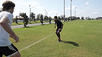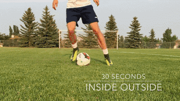 在练习时,用我们的脚外侧边缘带球,在开阔的场地带球跑,尽量让球一直靠近我们,我们也可以查看之前分享运球训练来做一些练习。