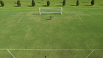 当我们过分靠近门将,再想射入球门角就会变得很困难,因为守门员会封堵住大多数的角度。