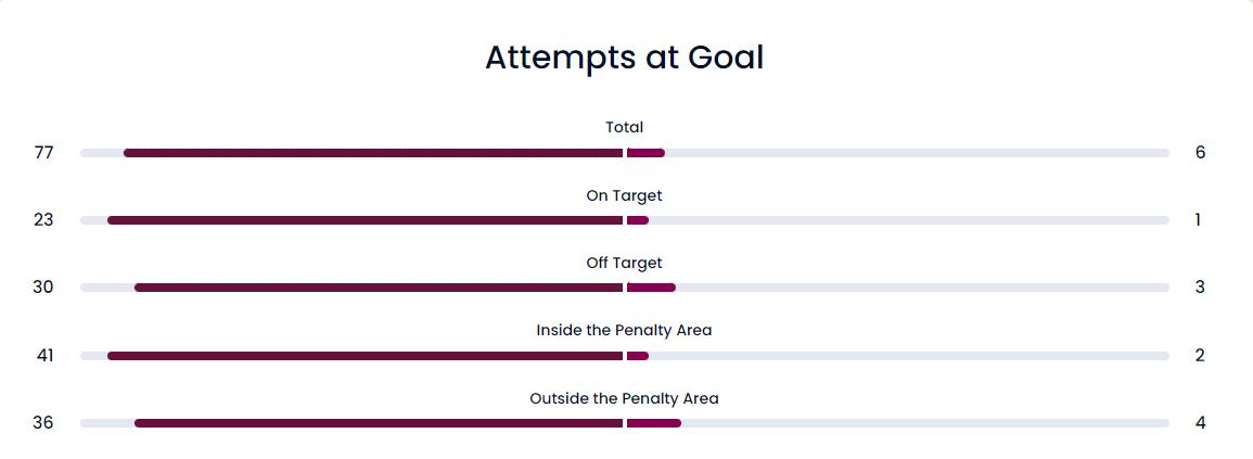 FIFA官方数据显示,巴西U17全场共计77脚射门,射正23次,打进9球;新喀里多尼亚则是6射1正,没有进球。