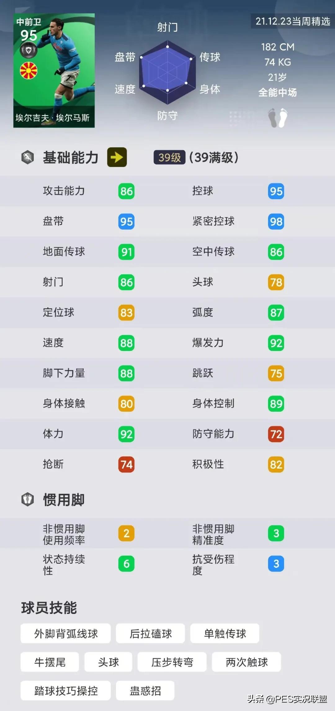 但由于他的进攻属性出色,兼具边锋级别的传控属性,且能够胜任的位置较多,所以对于需要中前场万金油的玩家来说,埃尔马斯(精)仍有一定价值。