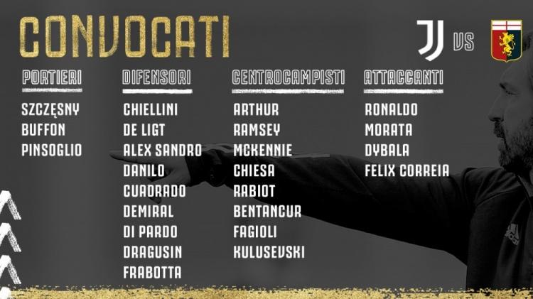 直播吧4月11日讯 北京时间04月11日21:00,意甲第30轮尤文将主场迎战热那亚。目前,尤文大名单已经出炉。