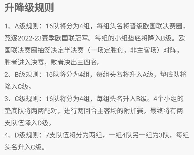 2022-23欧国联赛制+升降级规则: