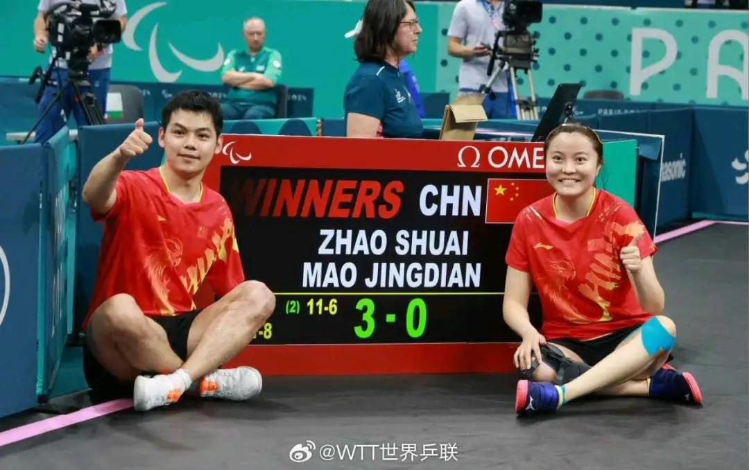 巴黎残奥会乒乓球混合双打XD17级决赛中