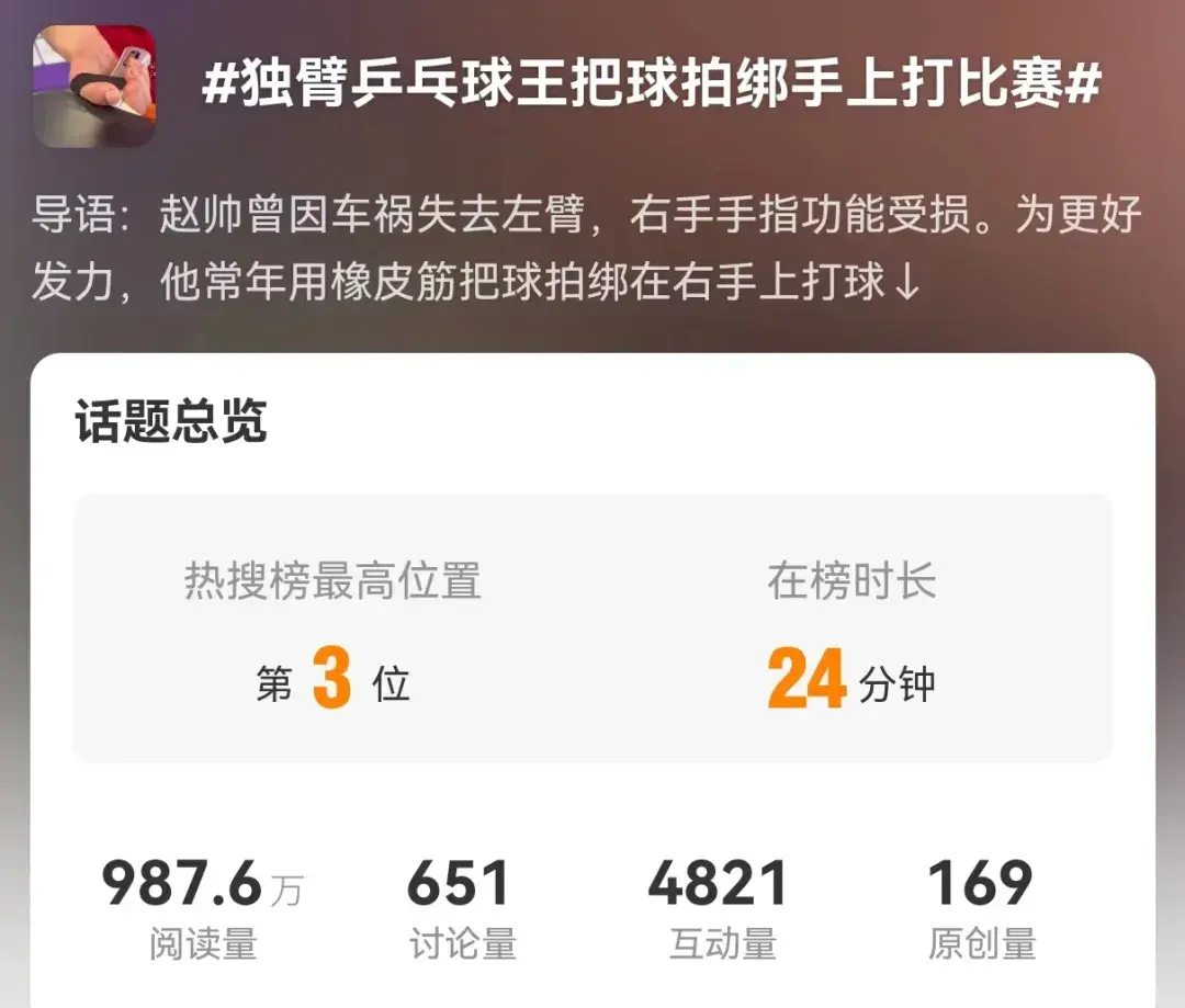 #独臂乒乓球王把球拍绑在手上打比赛#
