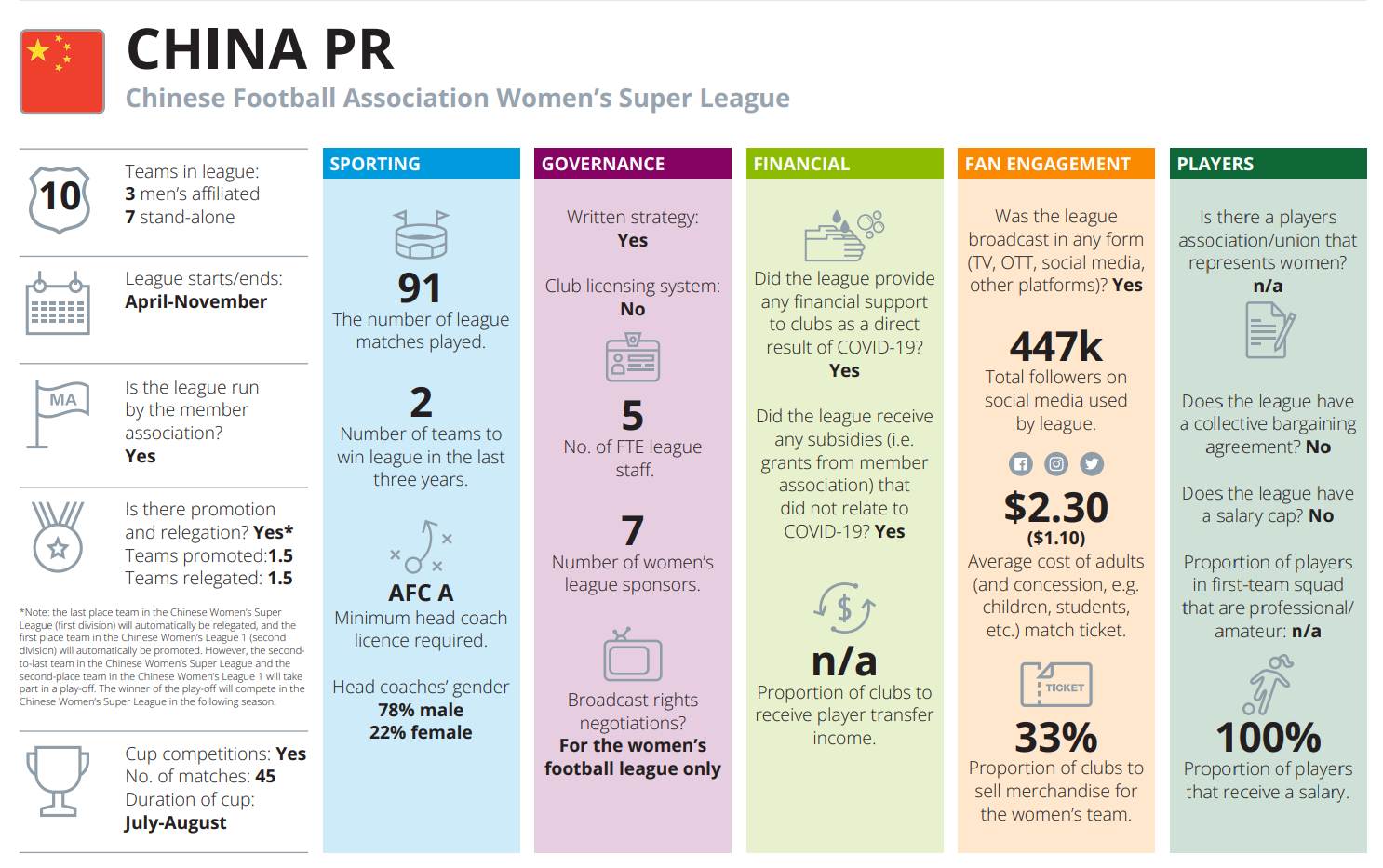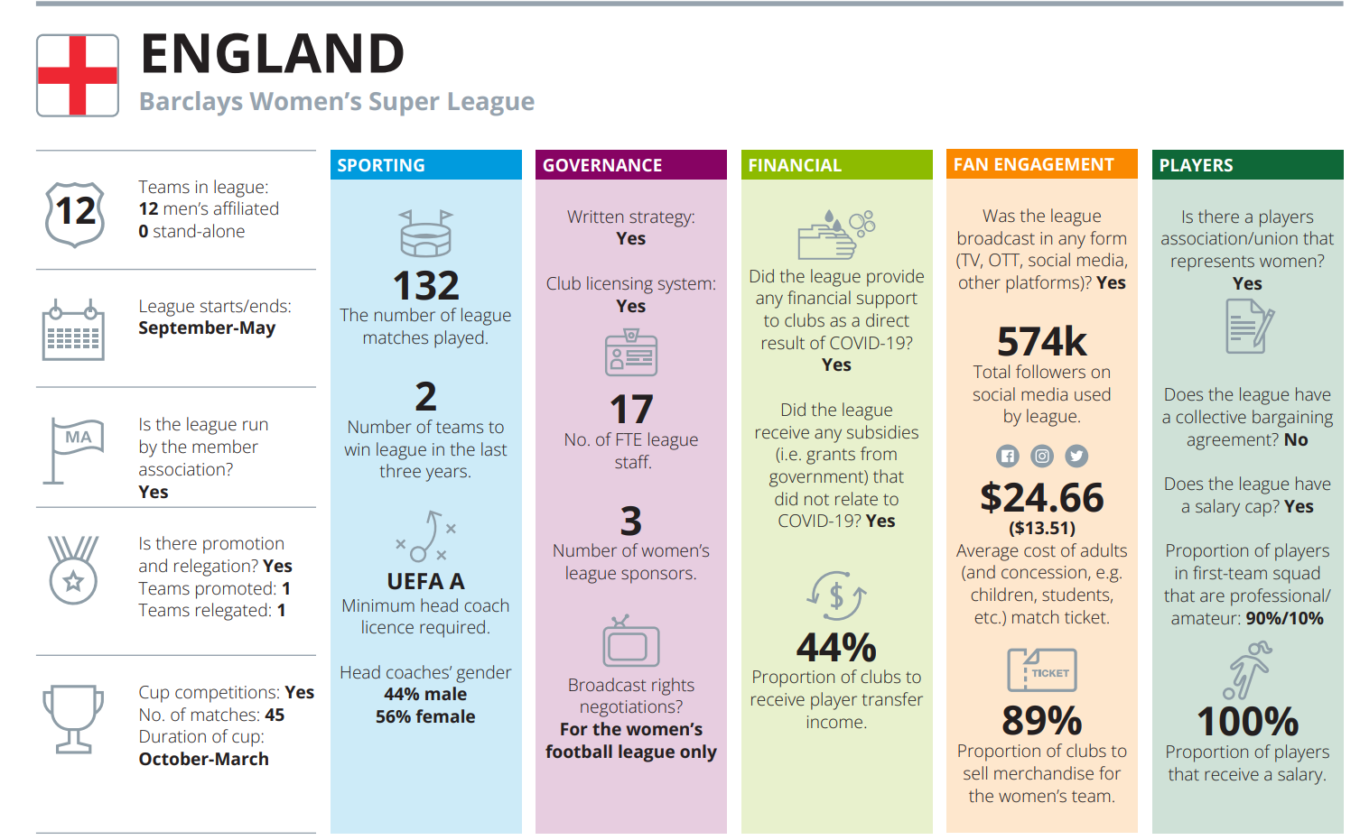 最后,虽然在联赛赞助商数量上,中国女超联赛(七家)明面上好于英格兰女超联赛(三家),但实际上,这是因为“统计口径”不同而导致的——《国际足联基准报告:女子足球》的主要创作单位德勤会计师事务所了解英格兰而不了解中国,中国女超联赛的联赛赞助商,或更准确的说法,赞助商能带来的实际利益,并不多于英格兰女超联赛。[2]