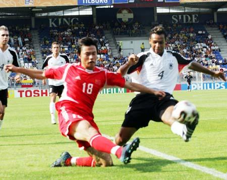 两国足球刚在该年6月世青赛上有过碰撞,1/8决赛中,陈涛梅开二度助中国两度领先,德国直到第89分钟,才由后来转投喀麦隆队的马文-马蒂普3-2惊险逆转。时隔4个月,中国足球再次在德国人面前守护了尊严,仅以0-1小负,唯一进球还是弗林斯的点球。至于多年后中国足球也效仿德国掀起反赌扫黑风暴,那就是另一个故事了。