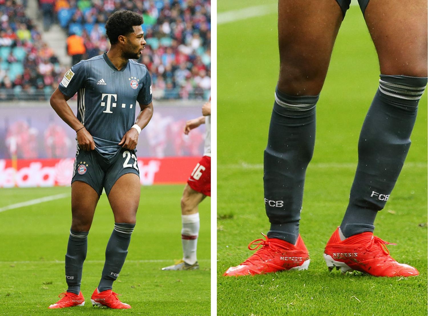 换上阿迪达斯球鞋的不止本泽马,还有此前一直穿着“小黑鞋”的拜仁球员格纳布里。这位年轻球员在上周宣布与成为阿迪达斯签约球员后,在本轮拜仁慕尼黑与RB莱比锡的比赛中,格纳布里上脚拥有红/银配色的全新adidas Nemeziz 19.1 “302 Redirect”足球鞋。
