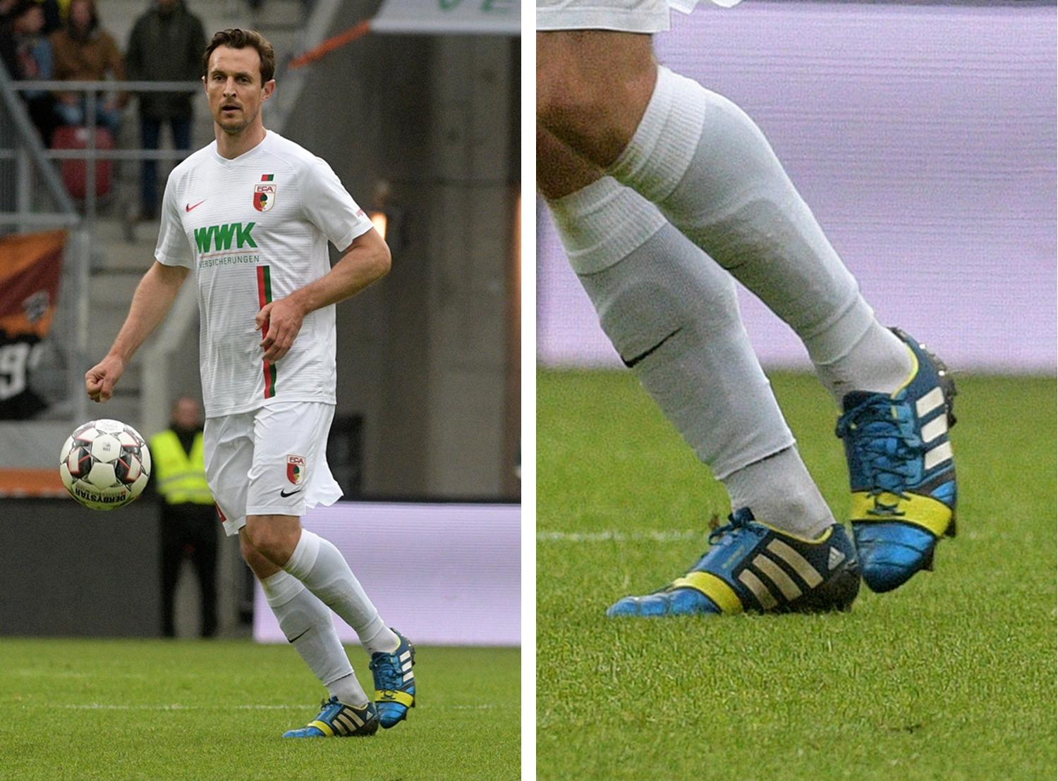 在上周末的德甲赛场上,奥格斯堡与柏林赫塔两队上演了一场进球大战。最终柏林赫塔4比3战胜奥格斯堡,从客场带走三分。虽然输球,不过奥格斯堡阵中几位球员脚上的球鞋还是值得我们好好关注下,比如穿着这双adidas Nitrocharge 1.0足球鞋的克里斯托夫·扬克尔。