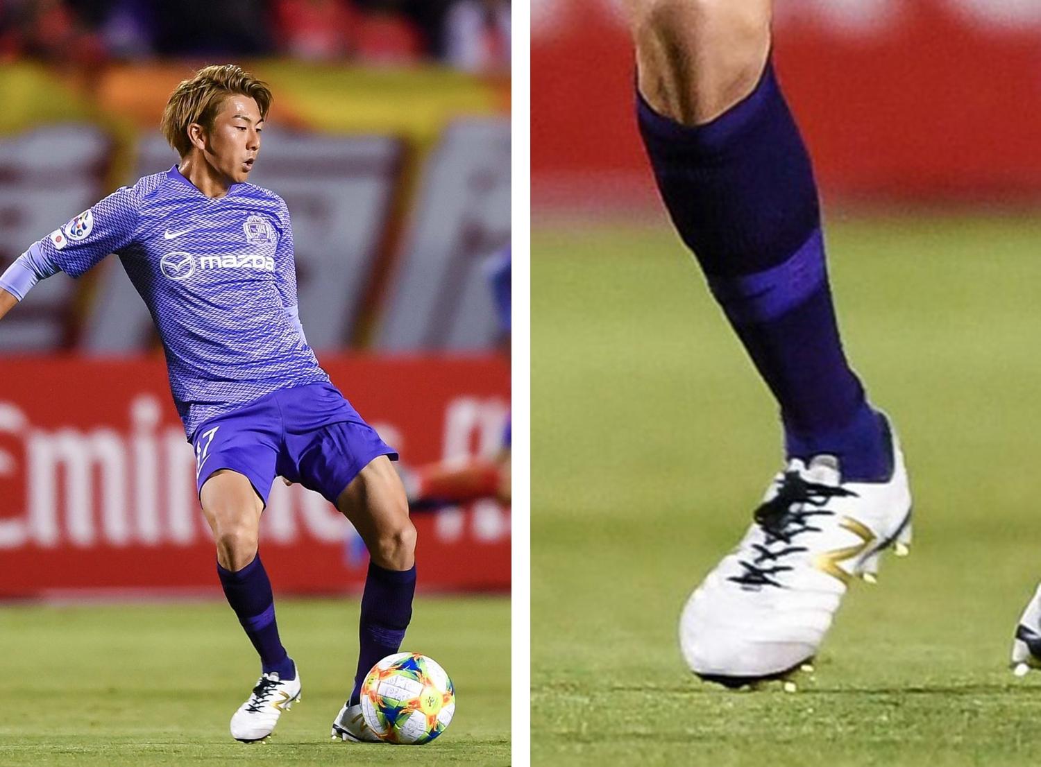 另外一场亚冠小组赛,广州恒大客场比0比1不敌广岛三箭,出线形势危急。本场比赛,广岛三箭球员松本泰志脚上的这双白/金配色New Balance足球鞋引起了我们的关注,一双专为日本市场打造的442 Pro HG足球鞋。