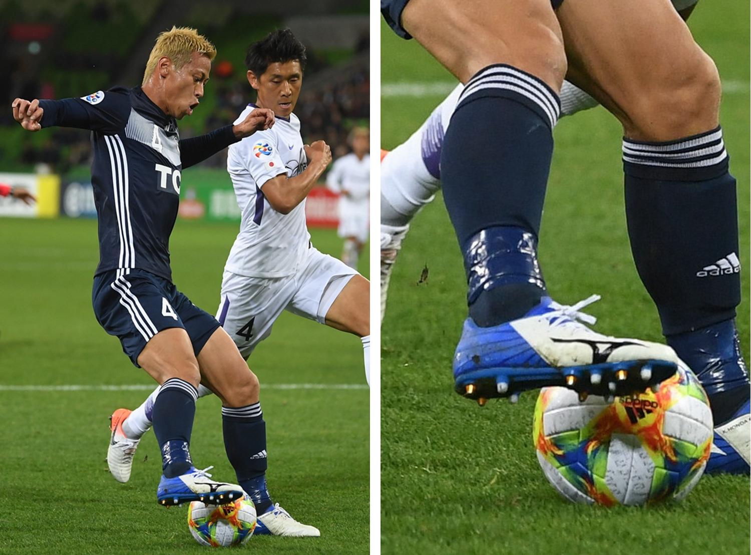 效力于澳超墨尔本胜利的日本球星本田圭佑在本轮亚冠小组赛面对来自祖国的球队广岛三箭。作为美津浓签约球员的中的大牌,本田圭佑本场比赛上脚了刚刚发布的全新Rebula 3 JAPAN足球鞋。