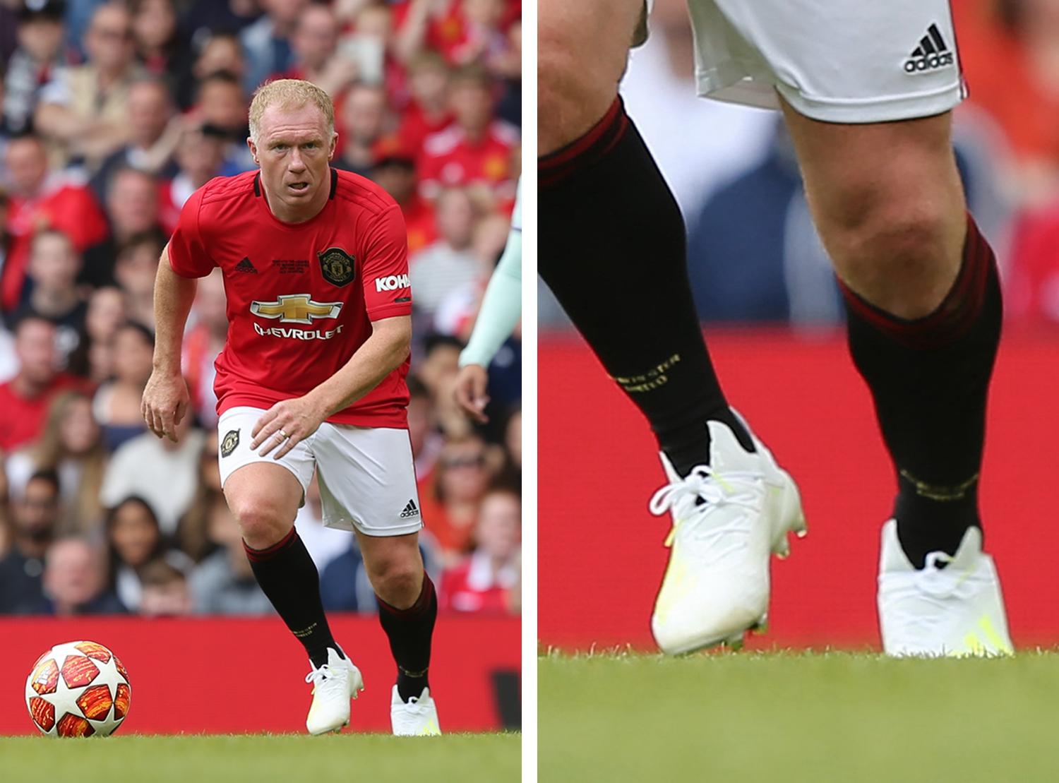 除了贝克汉姆和他穿着的adidas Predator Precision DB足球鞋外,亮相本场比赛的另一位曼联名宿斯科尔斯脚上的球鞋也值得我们留意,一双今春上市的adidas X 18.1 “Virtuso Pack”足球鞋,需要注意的是,斯科尔斯选择将一体化鞋舌剪开,看来他穿上这双球鞋也觉得压脚背。