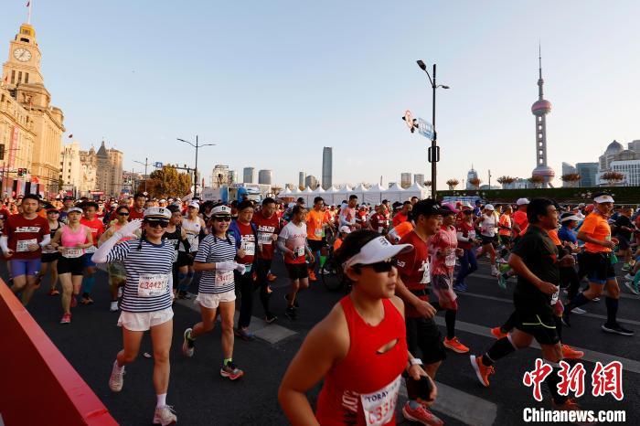11月26日,2023上海马拉松鸣枪开跑。 中新社记者 殷立勤 摄
