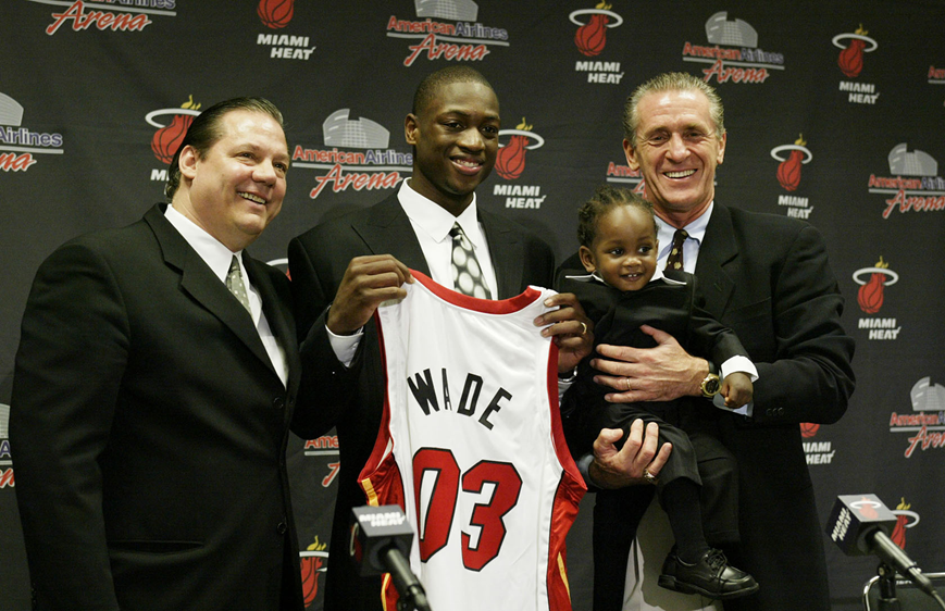 在被称为为白金选秀年的2003年选秀大会上,迈阿密热火队用五号签选中了这位来自马奎特大学的帅小伙子。这标志着韦德正式加入NBA这个大家庭。”闪电侠”的传奇生涯也于此开始。