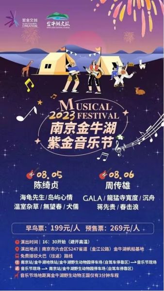本次音乐节充分依托南京金牛湖旅游度假区深厚文化底蕴和独特资源优势,以音乐为中心,结合美食、文创、娱乐等元素,打造一个独特、新颖、活跃的音乐节,彰显城市文化,激发城市活力,进一步彰显六合区城市文化底蕴和南京金牛湖旅游度假区独特魅力。