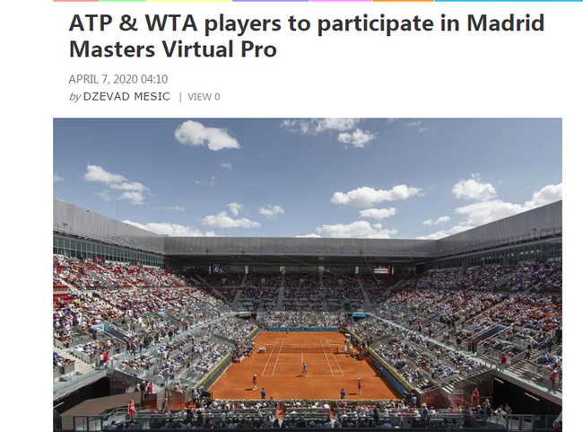 据4月7日WTA的官方账号表示,马德里公开赛宣布将于4月27日至4月30日举行电竞赛事,届时16名WTA和ATP的球员将在家中通过电玩游戏《Tennis World Tour》一决胜负,争夺总数为15万欧元的奖金。胜者有权把奖金分给受到疫情影响的低收入球员,此外组委会还将捐出5万欧元支援抗疫。男、女各有16名单打球员,分为四组比赛,组织者还将安排一系列“展览比赛”,以筹集更多资金。