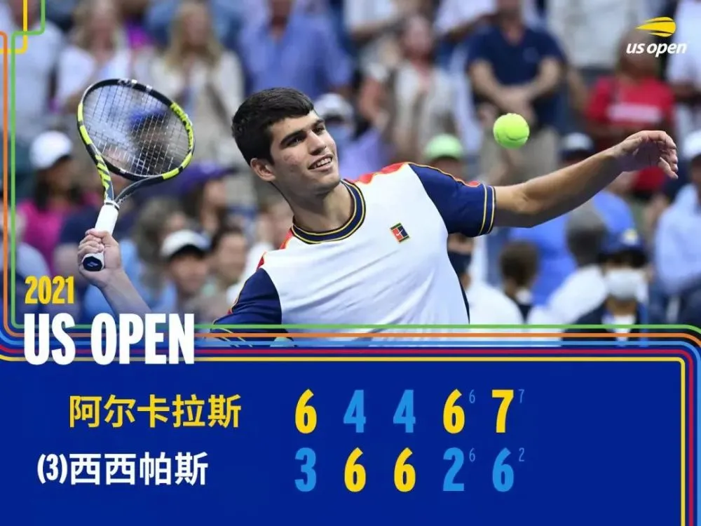在美网开始的一个月前,34岁的纳达尔宣布他结束了2021赛季;在美网的第一周结束时,18岁的卡洛斯•阿尔卡拉兹(Carlos Alcaraz)横空出世。他与纳达尔来自同一个国家,在男单第三轮的比赛中,他耗费四小时五盘大战击败了三号种子斯特凡诺斯•西西帕斯(Stefanos Tsitsipas)。