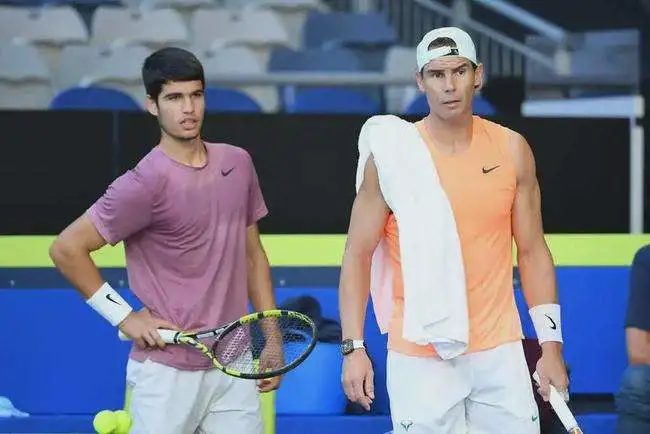 即使你不懂网球,也能看出纳达尔和阿尔卡拉兹的相似之处:冷静和积极;正拍拍速惊人;跳跃着握拳庆祝胜利;拿下冠军点后平倒在球场上。