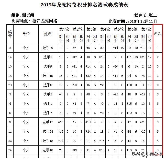 很多时候,家长陪着孩子参加比赛,看着最终的成绩表或者名次表,或多或少都有这样的疑问:自己的孩子和别人胜负场数相同,应该是并列的,为什么排名会有先后?