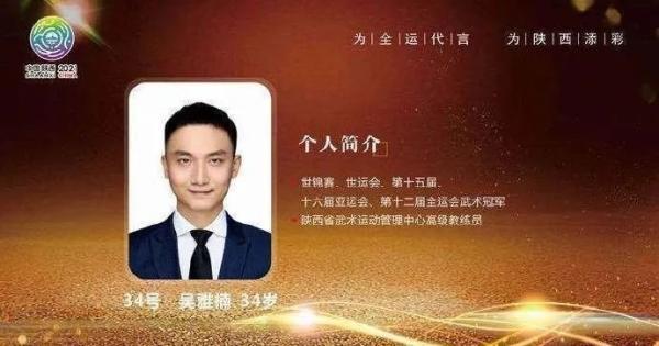 “太极王子”吴雅楠1998年进入陕西省武术队,目前为陕西省武术运动管理中心高级教练员,自己及所带队员在全运会上取得了一金一银、一个第四、一个第六的优异成绩。吴雅楠不仅运动成绩优异、执教能力突出,也擅长主持、演讲、音乐,曾多次参加央视、湖南卫视、江苏卫视、陕西卫视各类综艺节目。另外,作为陕西省体育明星代表,还参加了各类现场活动。