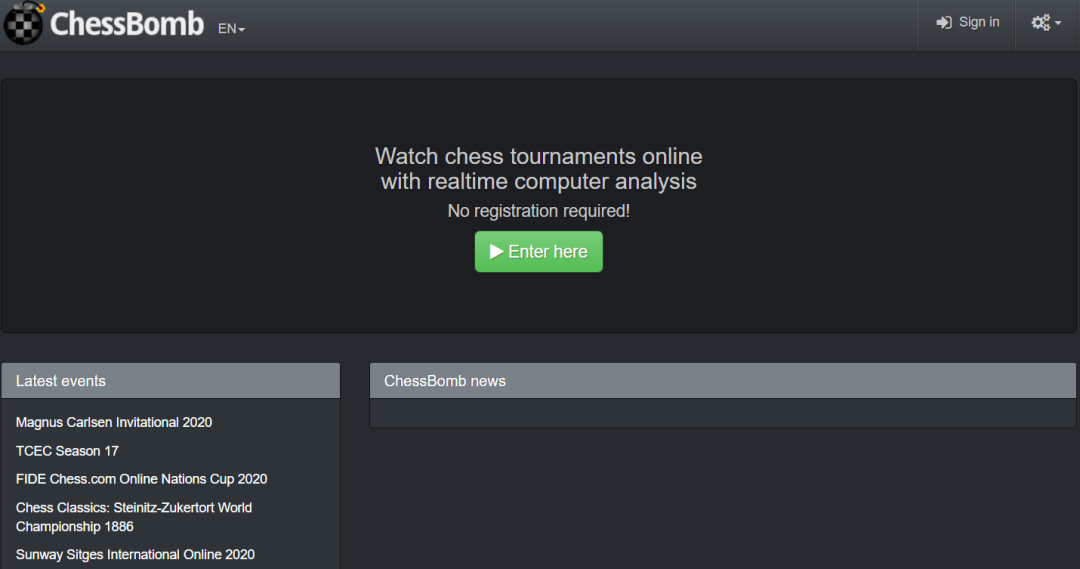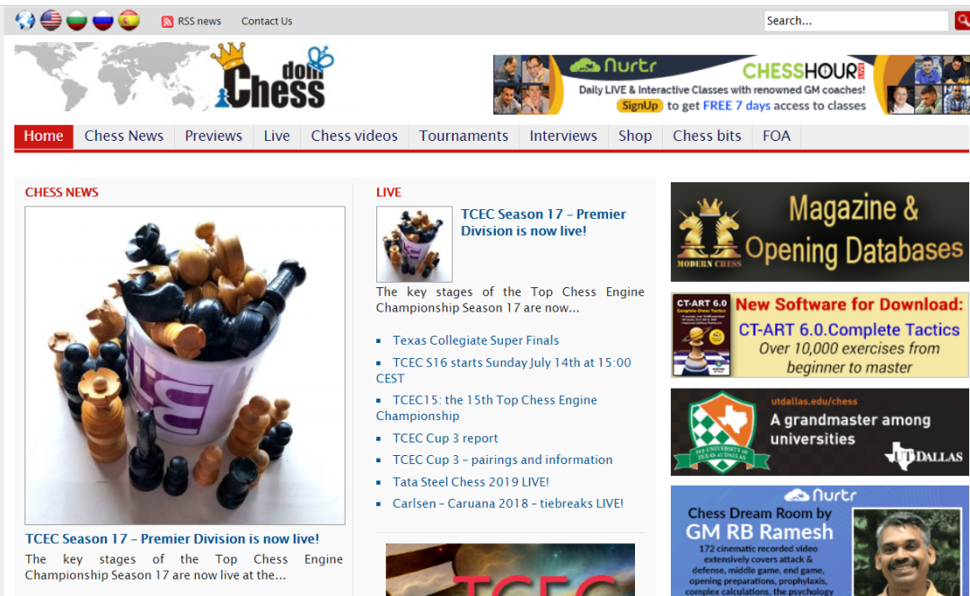 ChessDom(国际象棋之家)与ChessBomb(国际象棋直播网站)构成姊妹网站,主要特色两点: