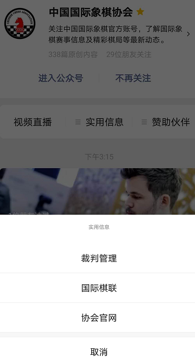 手机端可以关注中国国际象棋协会的微信公众号,可以更方便的查询各种信息。