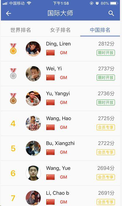 可以查询国际象棋世界顶级棋手的即时等级分(等级分暗分)和目前正在进行重大国际比赛信息。