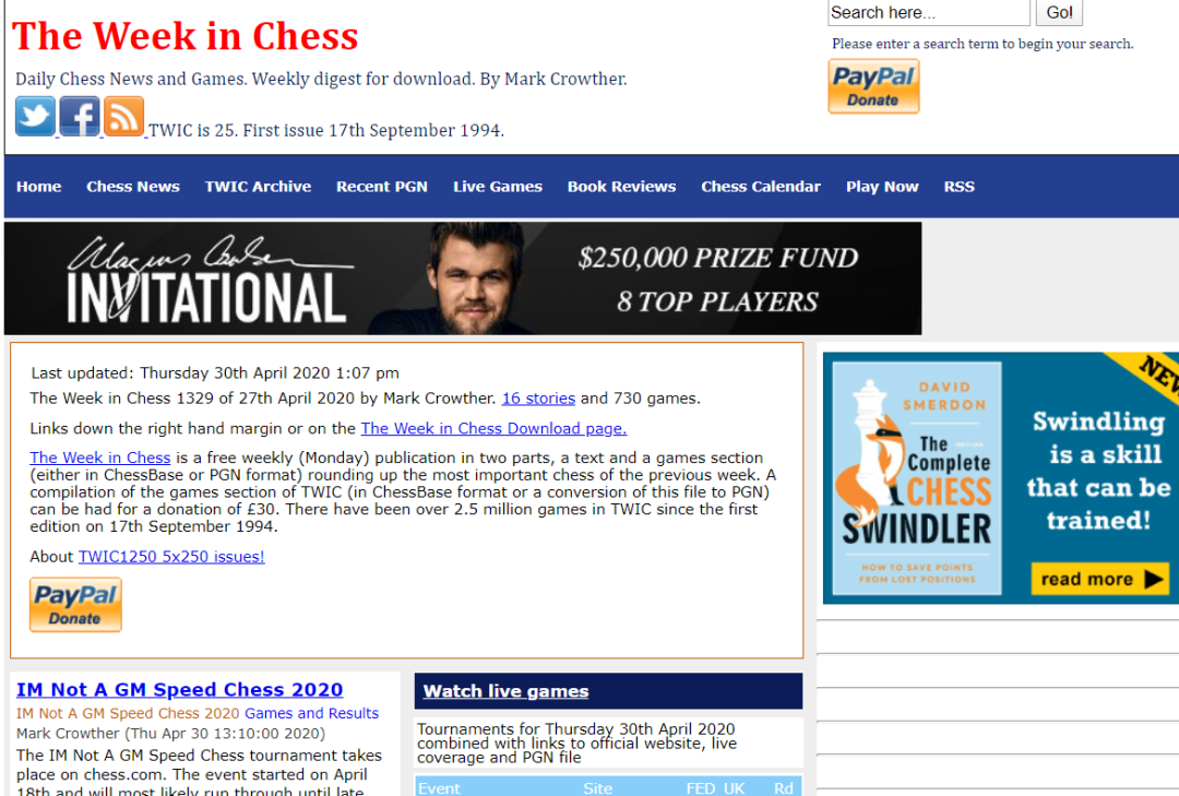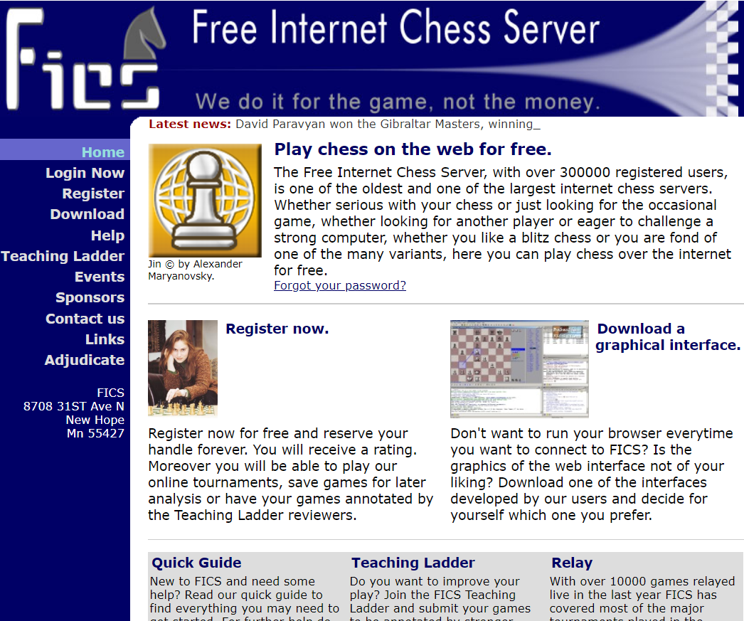 世界上最早的国际象棋网站,包括残局研究、国际象棋图书评论、详细的开局分析等,网站还收集每天世界各国的有关国际象棋报道并提供网络链接索引。