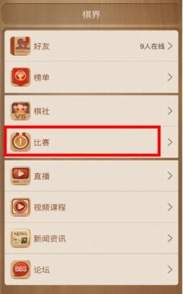 进入页面后点击“棋界”-“比赛”,根据自己的实际情况选择组别后进入报名页面。