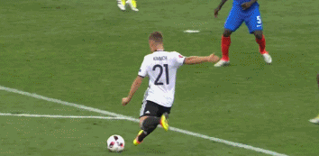 第22分钟,德国队左路的戈森斯前插到底线前横传,穆勒在门前的头球稍稍偏出。第24分钟,京多安为德国队赢得禁区前的任意球,克罗斯射门被法国队的人墙挡出。第27分钟,克罗斯再次完成了一脚任意球射门,这次球打高了。第38分钟,德国队右路传中被挡,格纳布里垫传将球勾回,京多安在点球点附近的抽射打偏了。