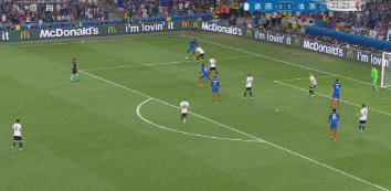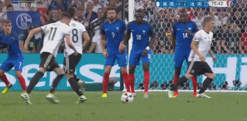 第42分钟,法国打到左路,埃弗拉直塞,格列兹曼拿球左脚打门,球打在边网上。随后德国被断球,吉鲁拿球形成单刀,但速度太慢,被赫韦德斯从背后断掉。