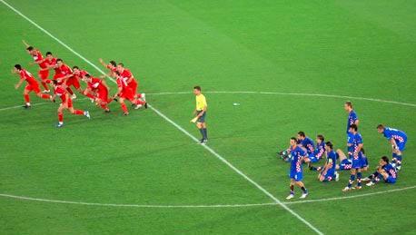2008年欧洲杯的口号是“渴望激情”,土耳其人为这句话做出了最好的注解。肾斗士克拉什尼奇第119分钟几乎绝杀,但塞米赫第121分钟扳平比分!点球大战中,莫德里奇、拉基蒂奇相继射失,斯尔纳罚进,图兰、塞米赫、阿尔藤托普弹无虚发。随着鲁斯图扑出彼得里奇的点球,土耳其取胜,再造奇迹。值得一提的是,本届欧洲杯之前,这场点球对决是唯一一场没有出现捷克、西班牙、荷兰、英格兰其中一支的对决。