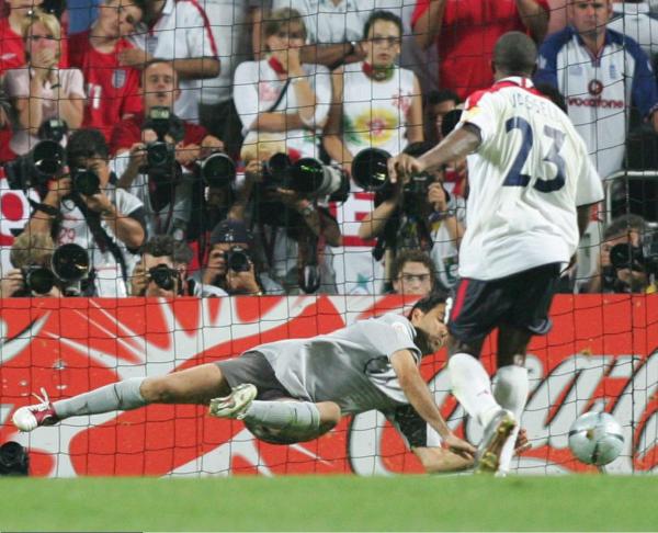 这场对决被视为当届欧洲杯最经典一战。90分钟内欧文和波斯蒂加先后破门,加时赛下半场鲁伊科斯塔和兰帕德又相继进球,比赛进入点球决胜。在双方的前六罚中,中场大将贝克汉姆和鲁伊-科斯塔先后踢飞,5-5平!第7轮,葡萄牙门将里卡多摘掉手套,只手力擒瓦塞尔,随后他又亲自操刀命中死角!里卡多决定性的一扑一射,书写了欧洲杯历史上的经典。2年后,他又在世界杯上3扑英格兰的点球,成为三狮噩梦。