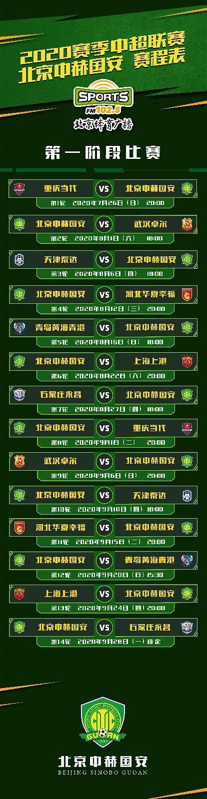 今天(13日)下午,新赛季中超第一阶段比赛的赛程公布,北京中赫国安队的比赛安排也正式出炉:
