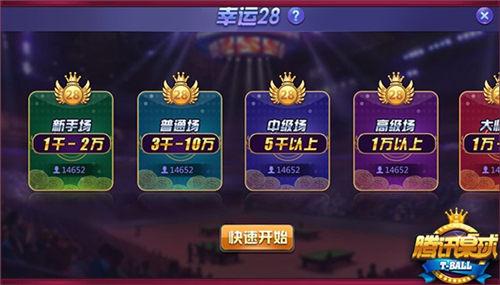 《腾讯桌球》“幸运28”玩法,根据参赛的金币数量分为新手场、普通场、中级场等不同的场次,玩家可以直接点击进入;凑齐3位玩家即可进行比赛。