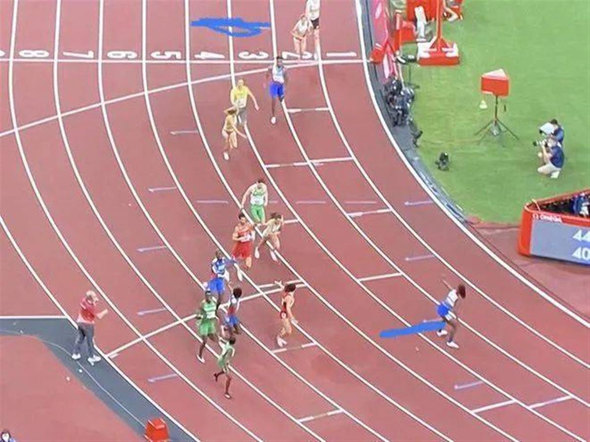 东京奥运会4×400米混合接力预赛,美国选手站错区域的犯规图示(图源:澎湃新闻)
