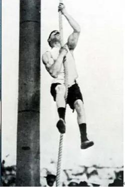 爬绳(Rope Climbing)自1896年到1932年四次入选奥运会比赛项目。比赛用的绳子长15米,规则是运动员双手抓绳,听到发令后,仅用双手向上攀爬,最快爬上绳子顶端的运动员获胜。