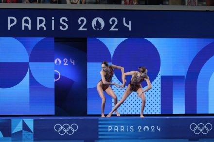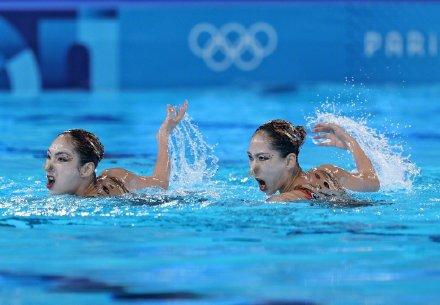 北京时间8月11日凌晨,巴黎奥运会花样游泳双人项目比赛结束。在技术自选中领先的中国组合王柳懿 /王芊懿,在自由自选比赛中排名第四,以总分第一的成绩夺得金牌。这是中国队历史上首次在花样游泳双人项目上摘得奥运金牌。(工人日报特派记者杨登峰 摄)