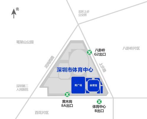 2.可乘坐6号线至体育中心站B口出站,随后步行至深圳市体育中心南广场抵达体育馆;