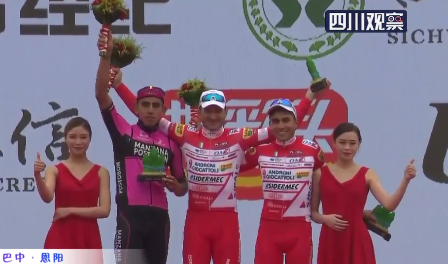 经过三个多小时的比拼,意大利安德罗尼洲际车队的马尔科·本法托,拿到了本赛段的冠军!亚军由哥伦比亚曼萨纳车队车手夺得,意大利安德罗尼洲际车队另一名车手获得季军。