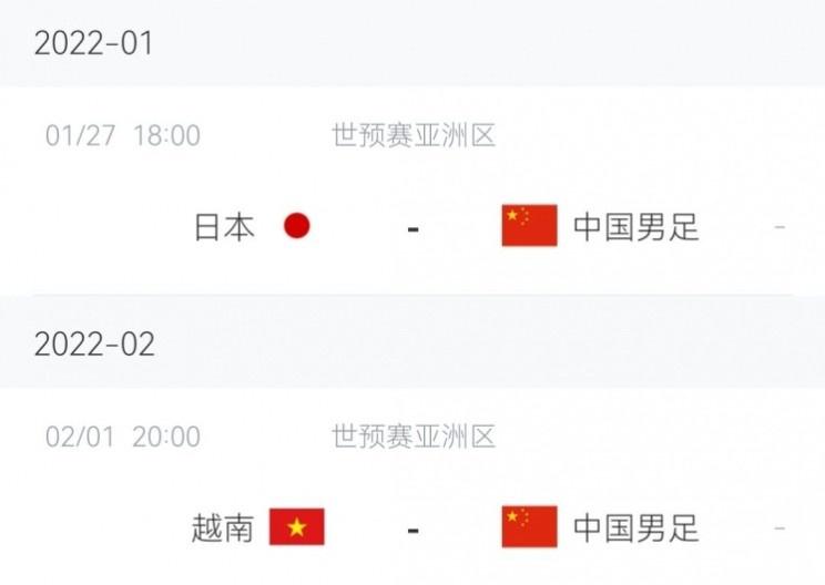 本期国足将出战12强赛赛程:1月27日战日本,大年初一战越南。