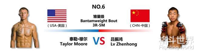2017年10月3日,鸿坤昆仑决综合格斗冠军赛15将在内蒙古阿拉善盟打响,于英雄辈出的草原圣地打响新一期铁笼激战。当晚一场男子雏量级对话中,中国选手吕振鸿将面对美国人泰勒·穆尔的强力挑战,这场中美对抗一经公布便引起了铁杆搏击迷的热切关注。