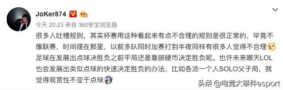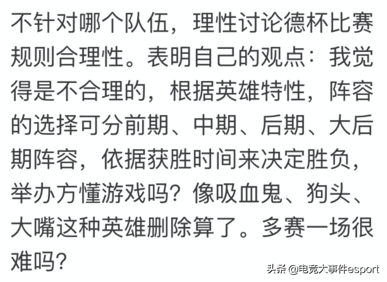 其实不光光是网友觉得赛制有些不合理,圈内人也同样这样觉得,joker在赛后就吐槽:德杯本身就是一个杯赛,不合理其实很正常