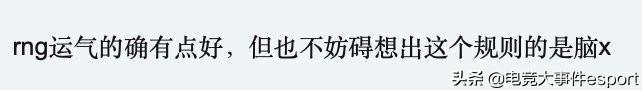 如果说摆在之前的话,RNG以这样的方式晋级可能并不会引起太多的非议,但是问题就在于RNG今天小组赛的表现实在是比较差,在连续对阵OMG和JDG的比赛中,RNG几乎都是中期之后出现比较大的失误,其中小虎的状态更是被很多网友指责太混,太烂,虽说后面连续赢下了YM和LNG,但显然在很多人看来,RNG的晋级还是依靠着这次的“奇葩规则”