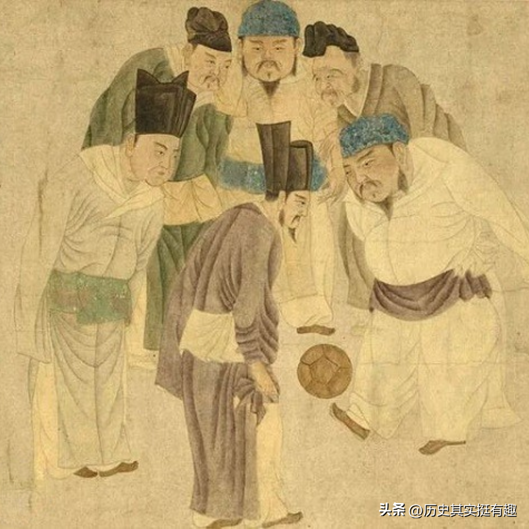 元时有位画家叫做钱选,还专门画过一幅《宋太祖蹴鞠图》,画的就是肥肥胖胖的赵匡胤和丞相赵普蹴鞠时的场景。