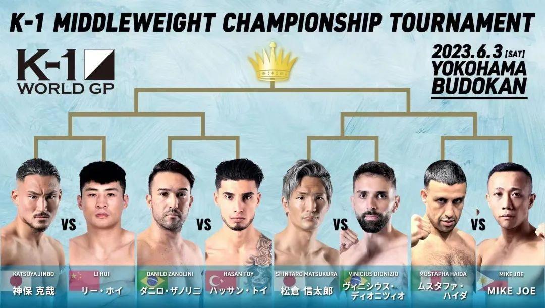 6月3日,日本横滨武道馆,新K-1 WGP 75公斤级初代王座决定战,日方特邀“大魔王”李辉代表中国、代表武林风参战,李辉也有望成为继“妖刀”魏锐后第二位捧起新K-1世界冠军奖杯的中国人,日方新闻发布会于4月24日召开。以下海报、对阵和现场图片来自K-1。