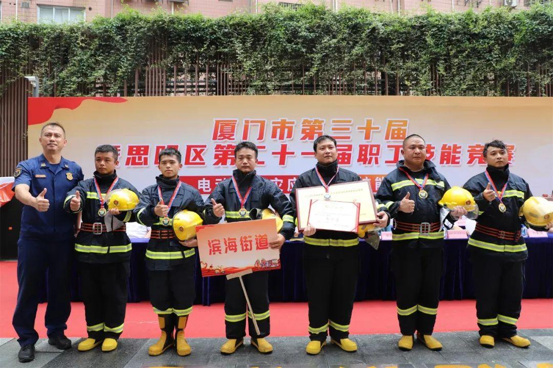 各单位参赛队员士气昂扬、顽强拼搏,队员之间团结共进、默契配合,把“赛场”当“战场”,比速度、比能力、比耐性,将平日训练的消防救援技能一一发挥,展现了微型消防站的初期快速处置能力。最终,团体总分由滨海街道夺得第一名,开元街道获得第二名,鹭江街道获得第三名。