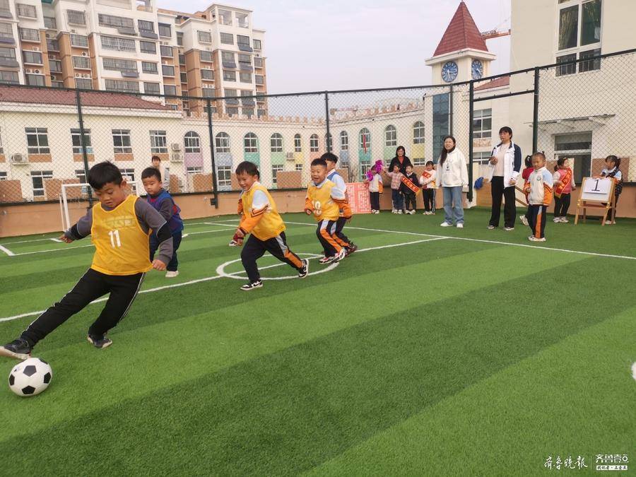 任城区李营中心幼儿园日前举行首届体育节大班幼儿足球联赛,15名足球小将开启人生第一场足球联赛。