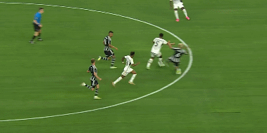 第33分钟,贝林厄姆在禁区内尝试1V4突破。尽管,皇马小巨星的盘带和过人非常出色,但还是难过利桑德罗-马丁内斯这关。